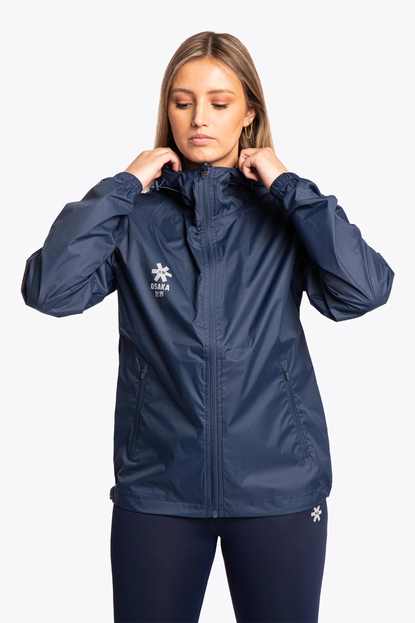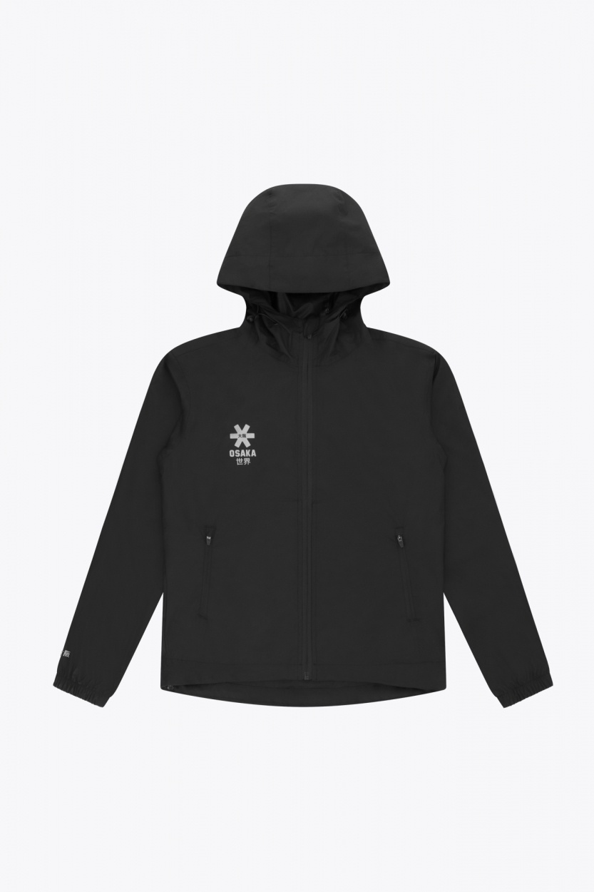 The Osaka Unisex Training Jacket in navy has been constructed with lightweight, water-repellent fabric to keep rain from penetrating during workouts. The hood can be adjusted with handy velcro strips. Product details